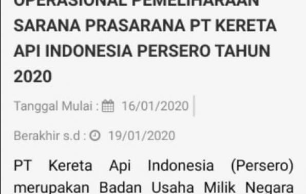 REKRUTMEN EKSTERNAL TINGKAT SLTA FORMASI OPERASIONAL PEMELIHARAAN SARANA PRASARANA PT KERETA API INDONESIA PERSERO TAHUN 2020