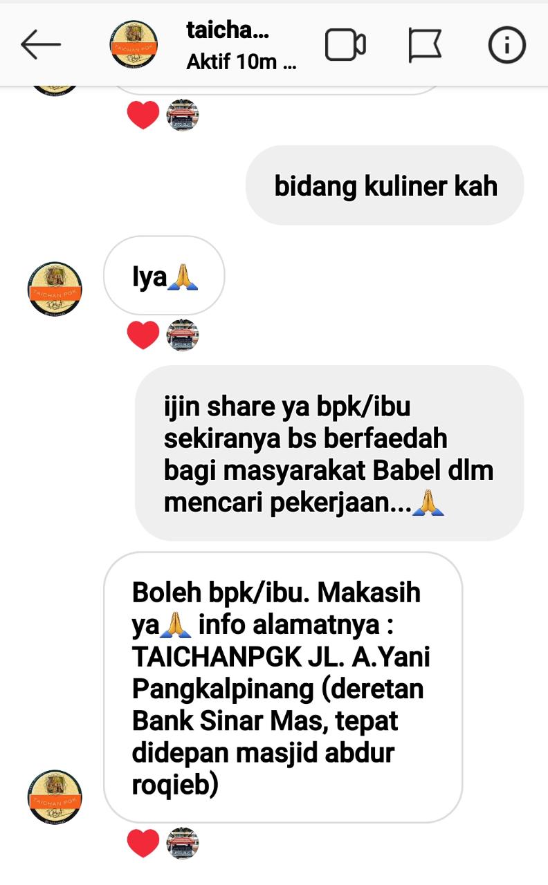 usaha bidang kuliner Bangka -Pangkalpinang membuka kesempatan bekerja di warung makanan