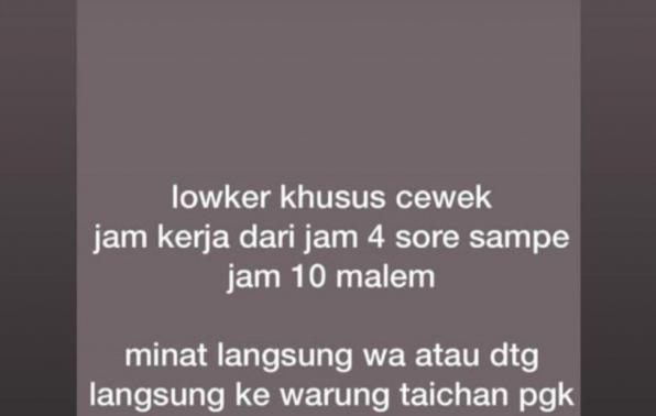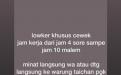 jam kerja mulai dari jam 16.00 wib - 22.00 wib, Perempuan.