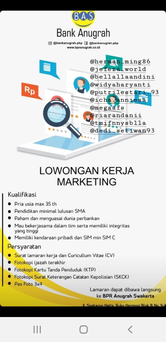 Official Instagram of Bank BPR Anugrah Swakerta.