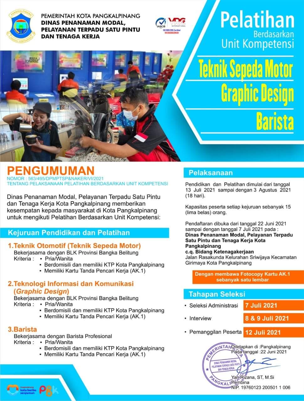 Segera daftarkan diri anda untuk mengikuti Pelatihan yang diadakan Dinas Penanaman Modal Pelayanan Terpadu Satu Pintu dan Tenaga Kerja Kota Pangkalpinang.