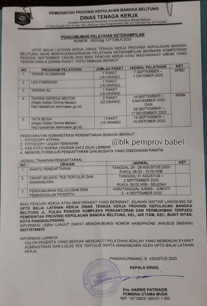 Pelaksanaan Pelatihan Gratis berbasis Kompetensi akan dibuka segera :
