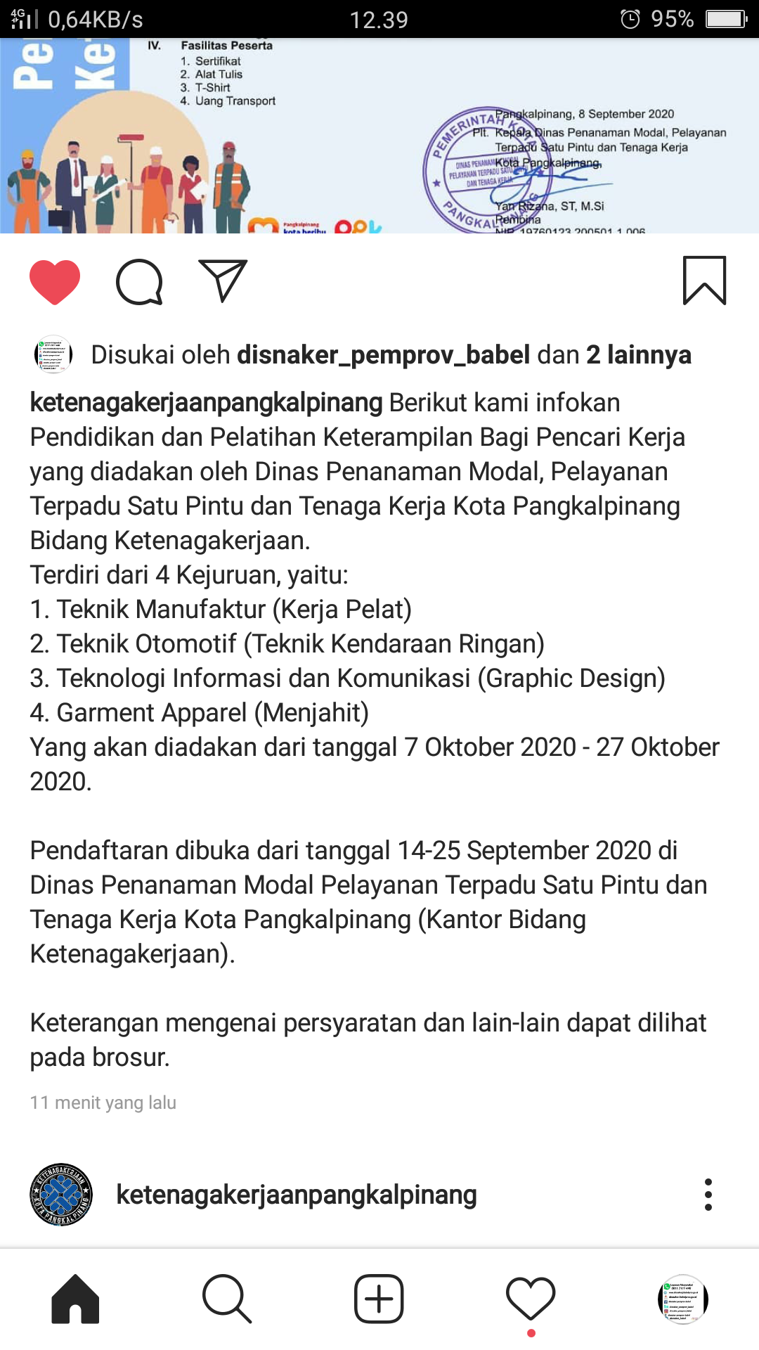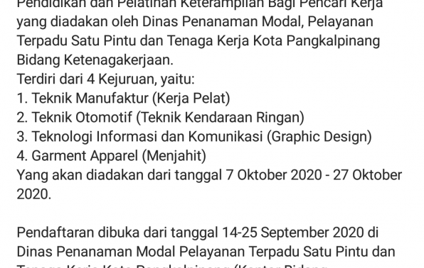 Info pelatihan Gratis @disnaker Pangkalpinang