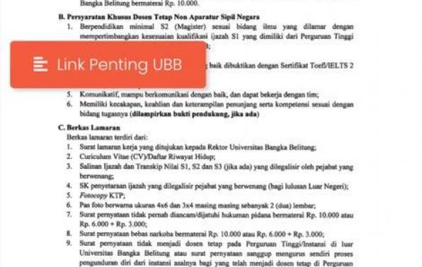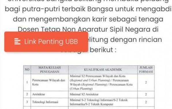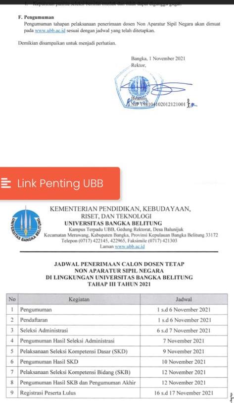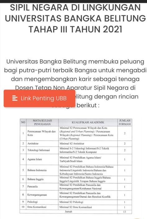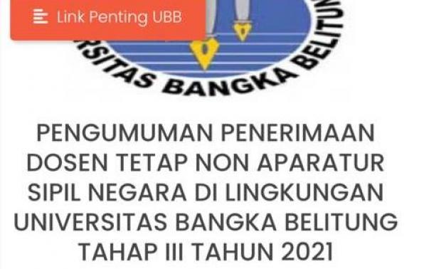 info Penerimaan Dosen Tetap Non ASN di Lingkup Universitas Bangka Belitung Tahap III Tahun 2021
