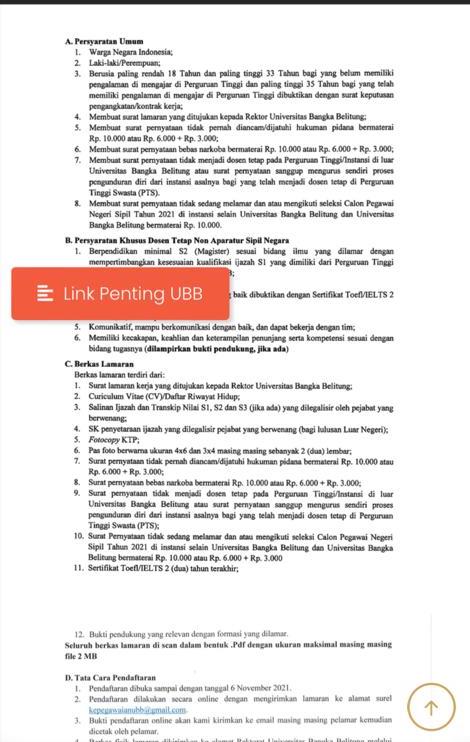 Penerimaan Dosen Tetap Non ASN di Lingkup Universitas Bangka Belitung Tahap III Tahun 2021