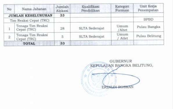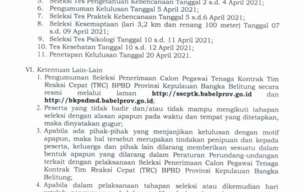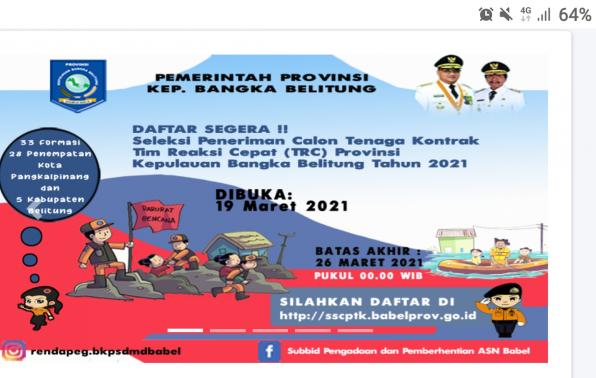 Penerimaan Tenaga Kontrak TIM REAKSI CEPAT/TRC Pemerintah Prov.Kep.Bangka Belitung Tahun 2021.