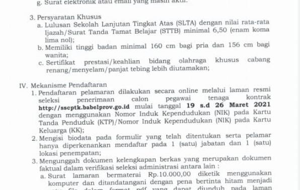 Untuk lebih lengkap untuk REGISTRASI,SURAT PERNYATAAN & format SURAT LAMARAN dapat di akses di link: http://sscptk.babelprov.go.id/.