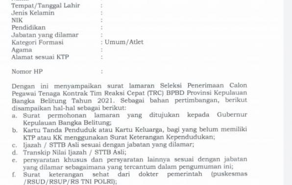 download SURAT LAMARAN dan SURAT PERNYATAAN di link; https://bkpsdmd.babelprov.go.id/content/seleksi-penerimaan-calon-pegawai...