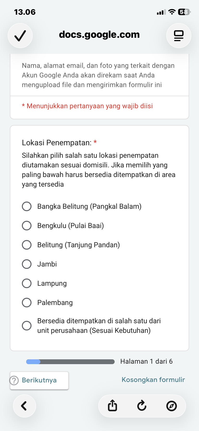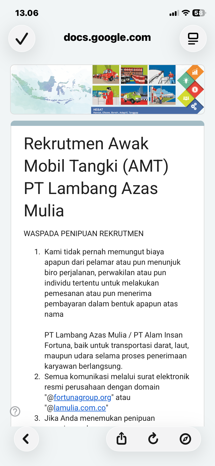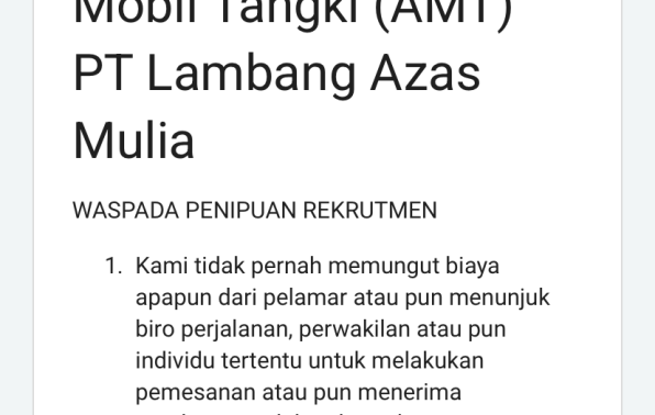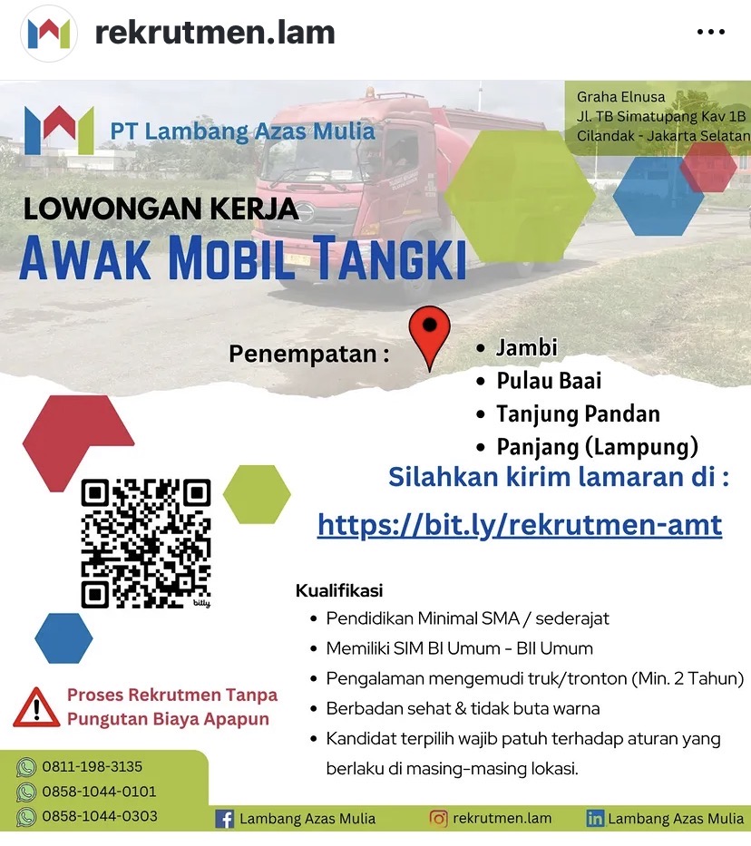 untuk posisi AWAK MOBIL TANGKI penempatan TanjungPandan -Belitung.