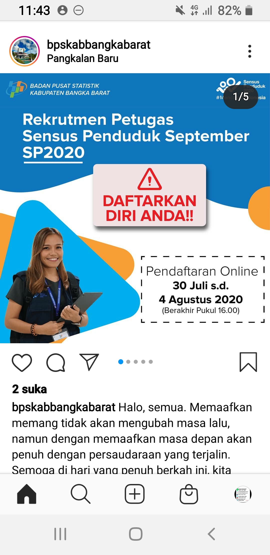 BPS Kabupaten Bangka Barat-Muntok, mengajak viewers sebagai mitra Sensus Penduduk 2020 .