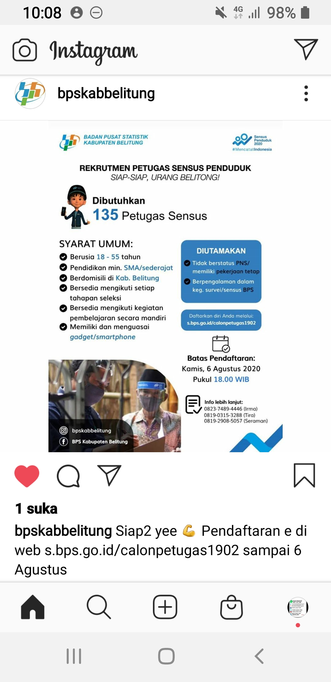Membuka Rekrutmen untuk Peugas Sensus Penduduk sejumlah 135 personil.