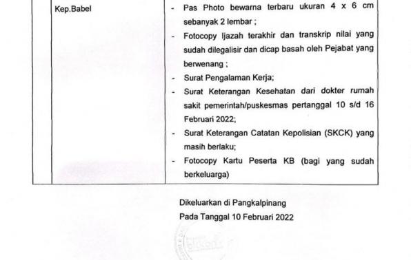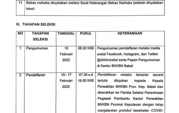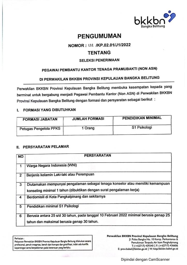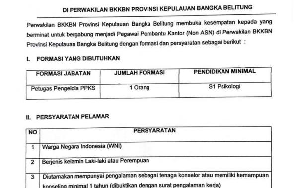 info Rekrutmen Tenaga Pramubakti Non ASN Petugas Pengelola Pusat Pelayanan Keluarga Sejahtera-BKKBN Prov Kep Babel
