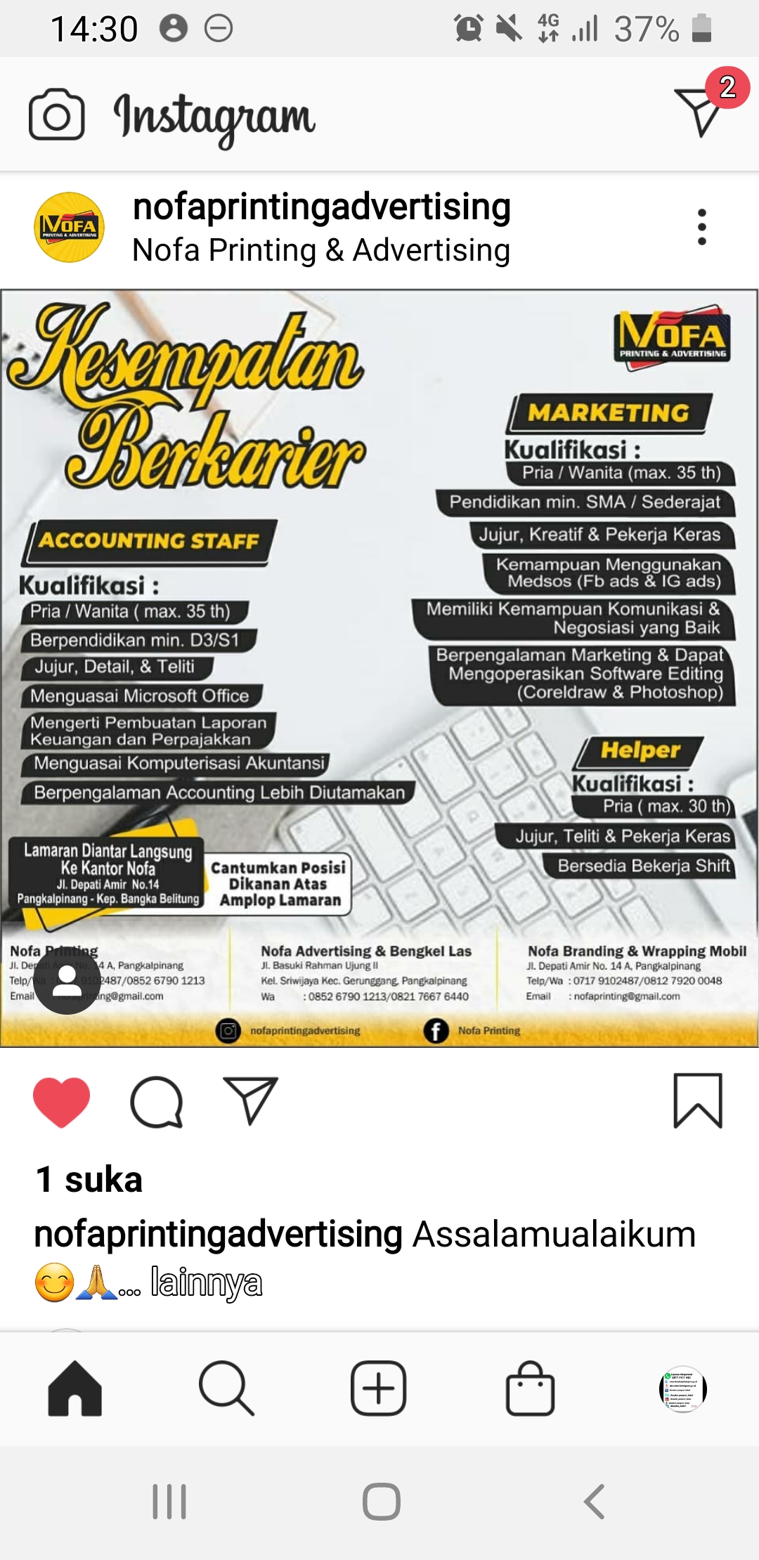 Loker Accounting,Marketing & Helper @pangkalpinang
