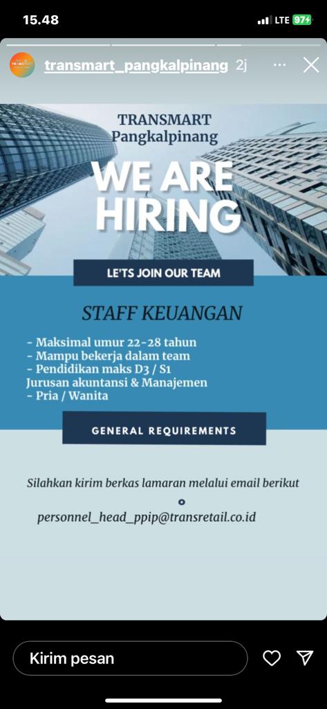 Loker STAFF KEUANGAN-Transmart Pangkalpinang