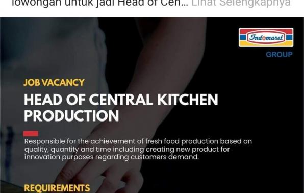 Buat kalian yang punya pengalaman sekaligus passion bekerja di bidang kuliner. Indomaret Group lagi ada lowongan untuk jadi Head of Central Kitchen Production loh! Disini kamu akan bertanggung jawab terhadap bagian produksi, bahkan menciptakan produk baru yang inovatif dan menarik loh! Yuk buruan apply di link yang tersedia ya.