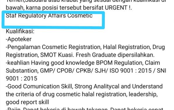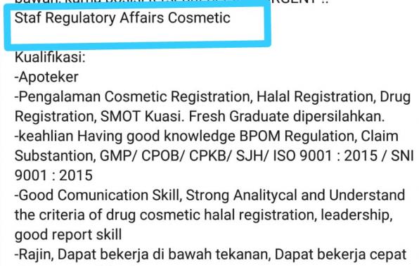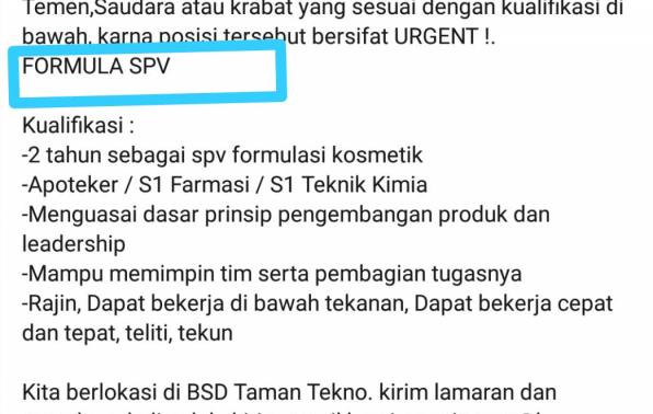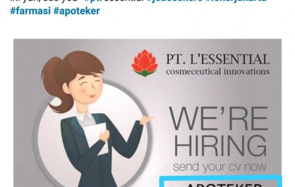 Haii, terdapat 6 Lowker di PT L'ESSENTIAL untuk tmn" yang punya Temen,Saudara atau krabat yang sesuai dengan kualifikasi di bawah, karna posisi tersebut bersifat URGENT !.