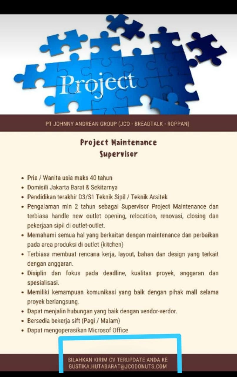 PT Johnny Andrean Group (JCO & coffee, BreadTalk, Roppan), Open Recruitment as :