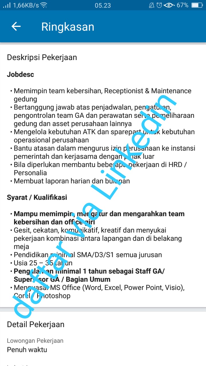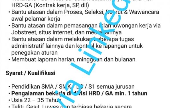 2. sebagai Staff GA/ Supervisor GA / Bagian Umum