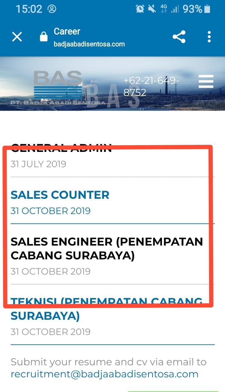 PT.Badja Abadi Sentosa, perusahaan di bidang perdagangan, membutuhkan 2 posisi jabatan sebagai :