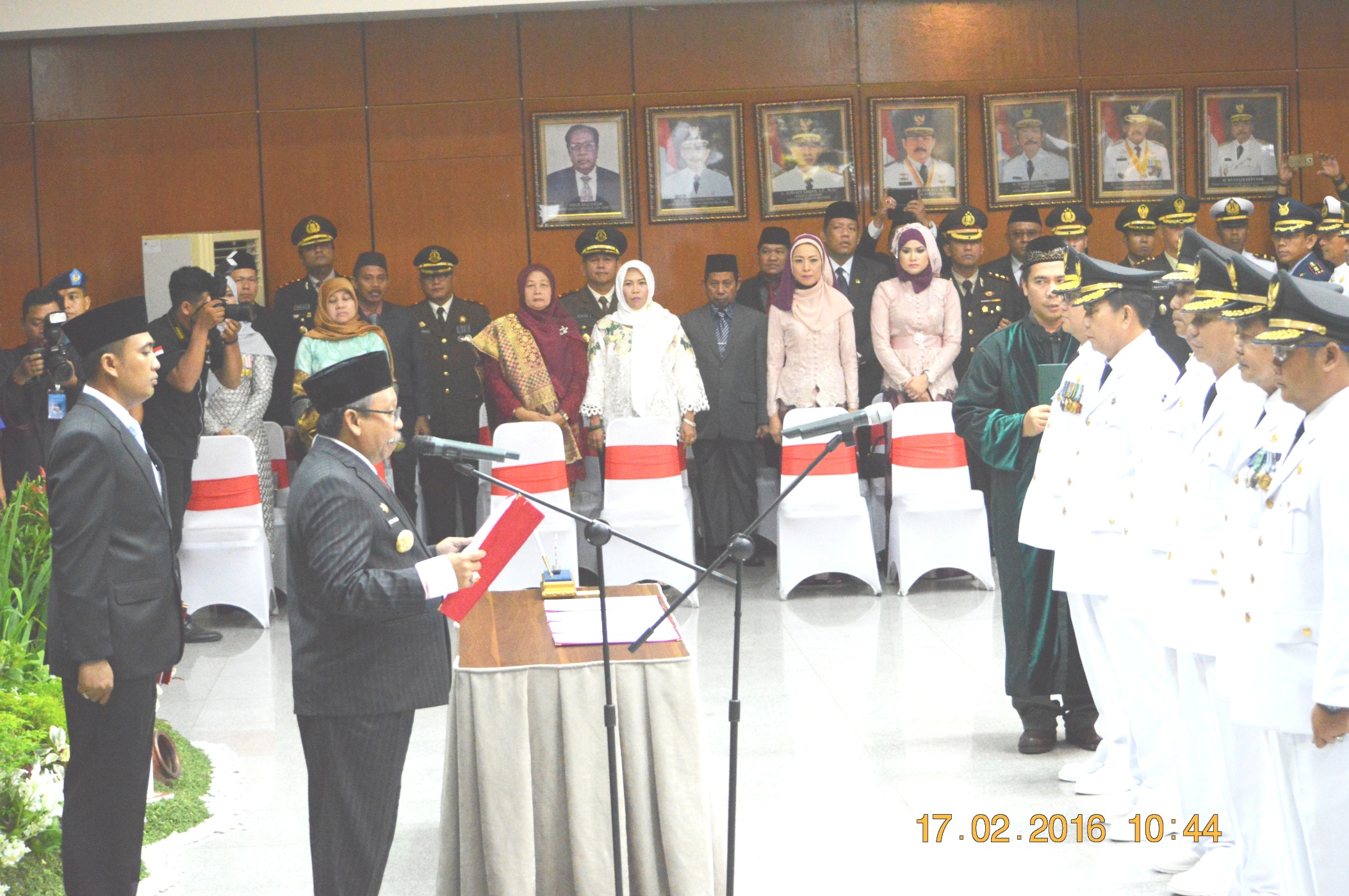 Pangkalpinang, Pelaksanaan pelantikan Bupati dan wakil Bupati terpilih telah selesai dilakukan oleh Gubernur Kepulauan Bangka Belitung, H.Rustam Effendy, SE, hari ini, Rabu, 17 Februari 2016 berlokasi di Ruang Pasir Padi Lantai III Gubernur. Hadir dalam undangan pelantikan tersebut seluruh pimpinan daerah se provinsi kepulauan Bangka Belitung, pimpinan fraksi se Babel, Kepala Dinas Vertikal, Ketua dan wakil ketua DPRD se Bangka Belitung dan Provinsi, mantan Gubernur Babel pertama, ketua tim penggerak PKK se Bangka Belitung dan Kabupaten , tokoh adat dan pejuang.