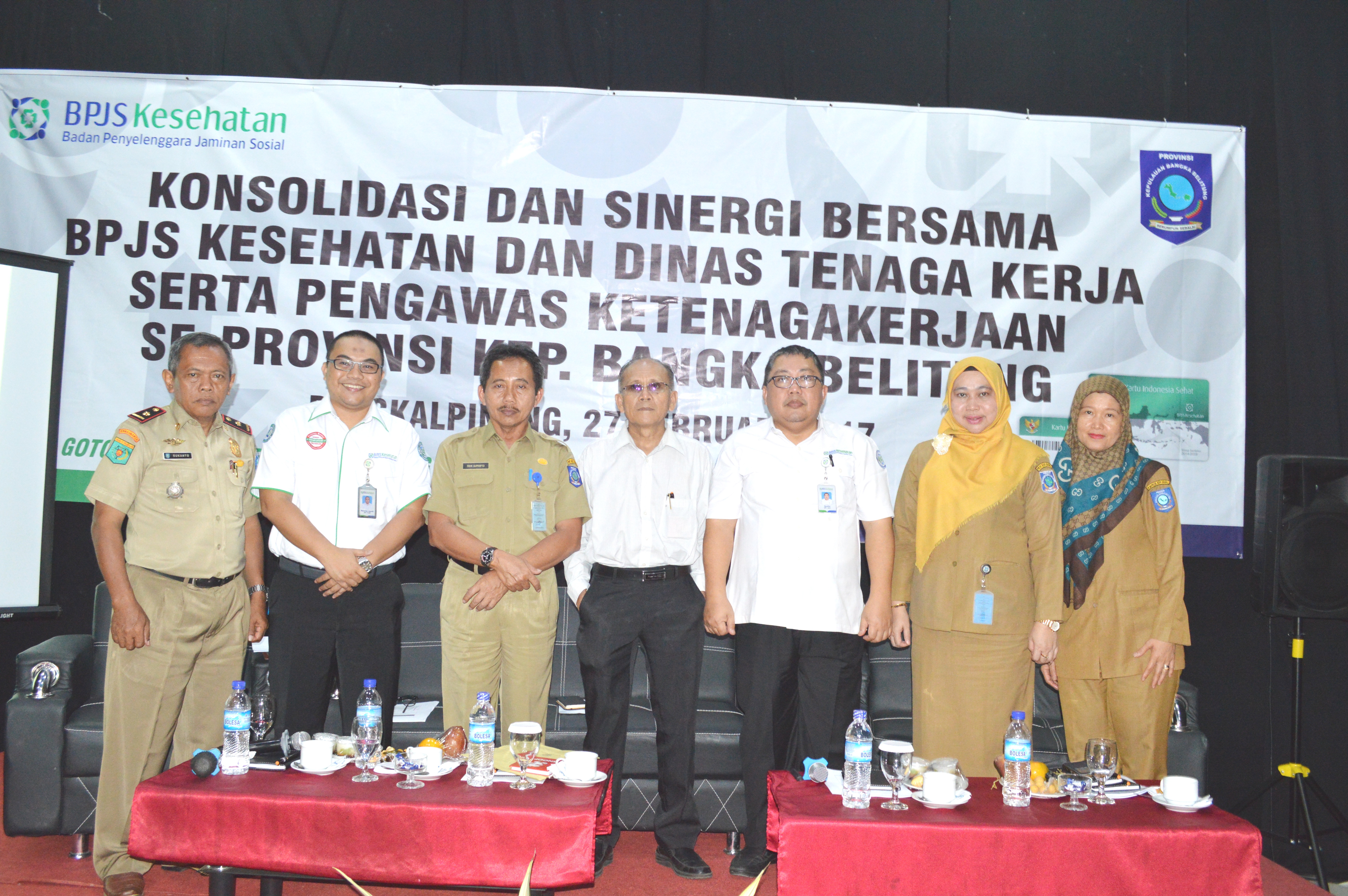 Pangkalpinang, Guna terwujudnya jaminan kesehatan yang berkualitas dan berkesinambungan bagi seluruh penduduk Indonesia di 2019, BPJS (Badan Penyelenggara Jaminan Kesehatan) melakukan sinergisitas dan konsolidasi kepada Pengawas Ketenagakerjaan Dinas Tenaga Kerja Pemerintah Provinsi Kepulauan Bangka Belitung dan SPSI (Serikat Pekerja Seluruh Indonesia) Babel, Senin (27 Februari 2017).
