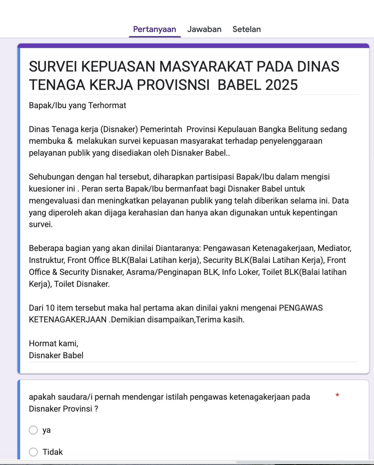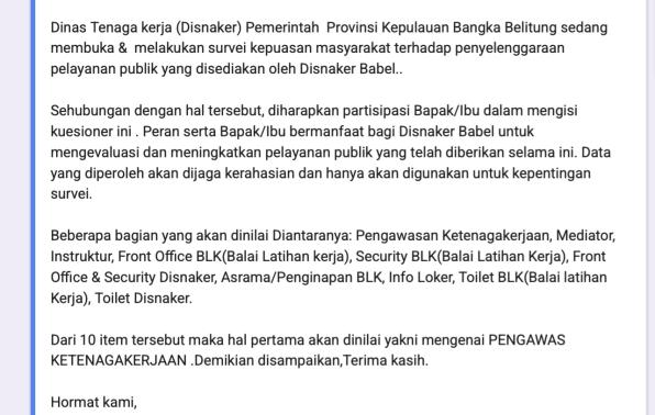 Survei pengawas ketenagakerjaan pada Disnaker Babel di Tahun 2025