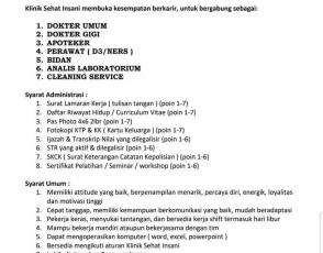 Dokter umum,dokter gigi,apoteker,perawat,bidan,analis Laboratorium,cleaning servis @Klinik Sehat Insani-Bangka Tengah