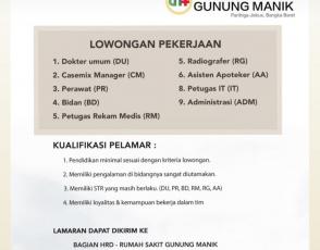 petugas iT,Administrasi,Ass.apoteker,Radiografer,petugas rekam medik,bidan,perawat,casemix manager,dokter umum @Rumah Sakit Gunung Manik-Parittiga/Jebus