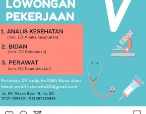 Membuka kesempatan kerja sebagai Analis Kesehatan,Bidan,Perawat Rumah sakit @Pangakalpinang
