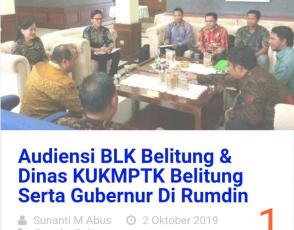 Audiensi BLK Belitung & Dinas KUKMPTK Belitung Serta Gubernur Di Rumdin Gubernur Babel(Erzaldi Rosman) di dampingi oleh Kadisnaker Babel,H.Patriadi dan Kepala BLKI Babel,Oyon.R.