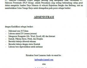PT.Haleyora Powerindo Projek Bangka Belitung Membutuhkan Calon Tenaga Kerja sebagai :