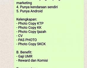 Membuka Lowongan kerja sebagai Marketing & Admin.