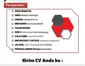 Pria/wanita, Pendidikan minimal SMA/sederajat, umur maksimal 25 tahun, memiliki SIM C, menguasai microsoft office,...