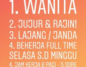 Kriteria: Laki²/Perempuan, berpengalamam, berpenampilan menarik.