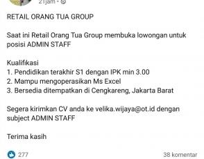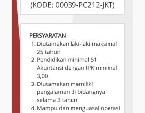 Pria/wanita belum menikah, usia maksimal 27 tahun, pendidikan minimal D3/S1 segala jurusan, IPK minimal 2,75,...