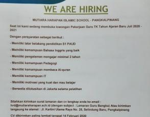Membuka Lowongan pekerjaan Guru TK tahun ajaran baru Juli 2020-2021.
