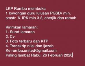 Lulusan PGSD//minimal semester 6 , IPK minimal 3,2., ramah dan enerjik.