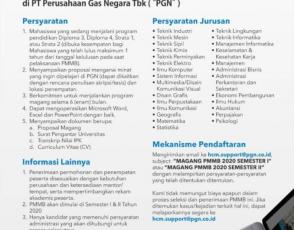 Mari bergabung menjadi nsan energi,baik dengan berkesempatan mengikuti Program Magang Mahasiswa Bersertifikat (PMMB) di PT.Perusahaan Gas Negara Tbk.