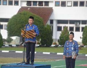 Pangkalpinang,Kepala Dinas Tenaga kerja Pemerintah Provinsi Kepulauan Bangka Belitung,Elius Gani selaku inspektur upacara dalam pelaksanaan upacara rutin mingguan yang diselenggarakan dilingkup Pemprov Babel.Senin,19 Juni 2023.