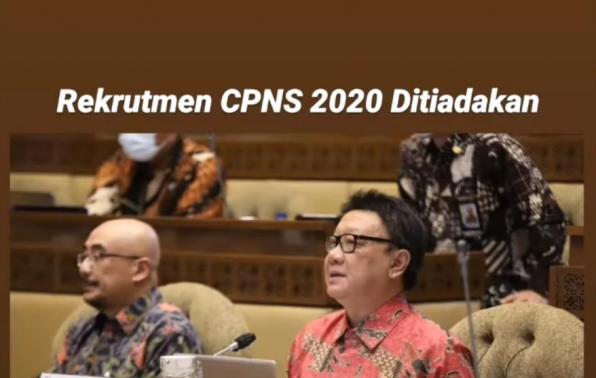 JAKARTA – Menteri Pendayagunaan Aparatur Negara dan Reformasi Birokrasi (PANRB) Tjahjo Kumolo mengatakan pemerintah akan meniadakan rekrutmen calon pegawai negeri sipil (CPNS) tahun 2020. "Penerimaan CPNS tahun 2020 akan kami tiadakan," ujar Menteri Tjahjo di Jakarta, Rabu (08/07).