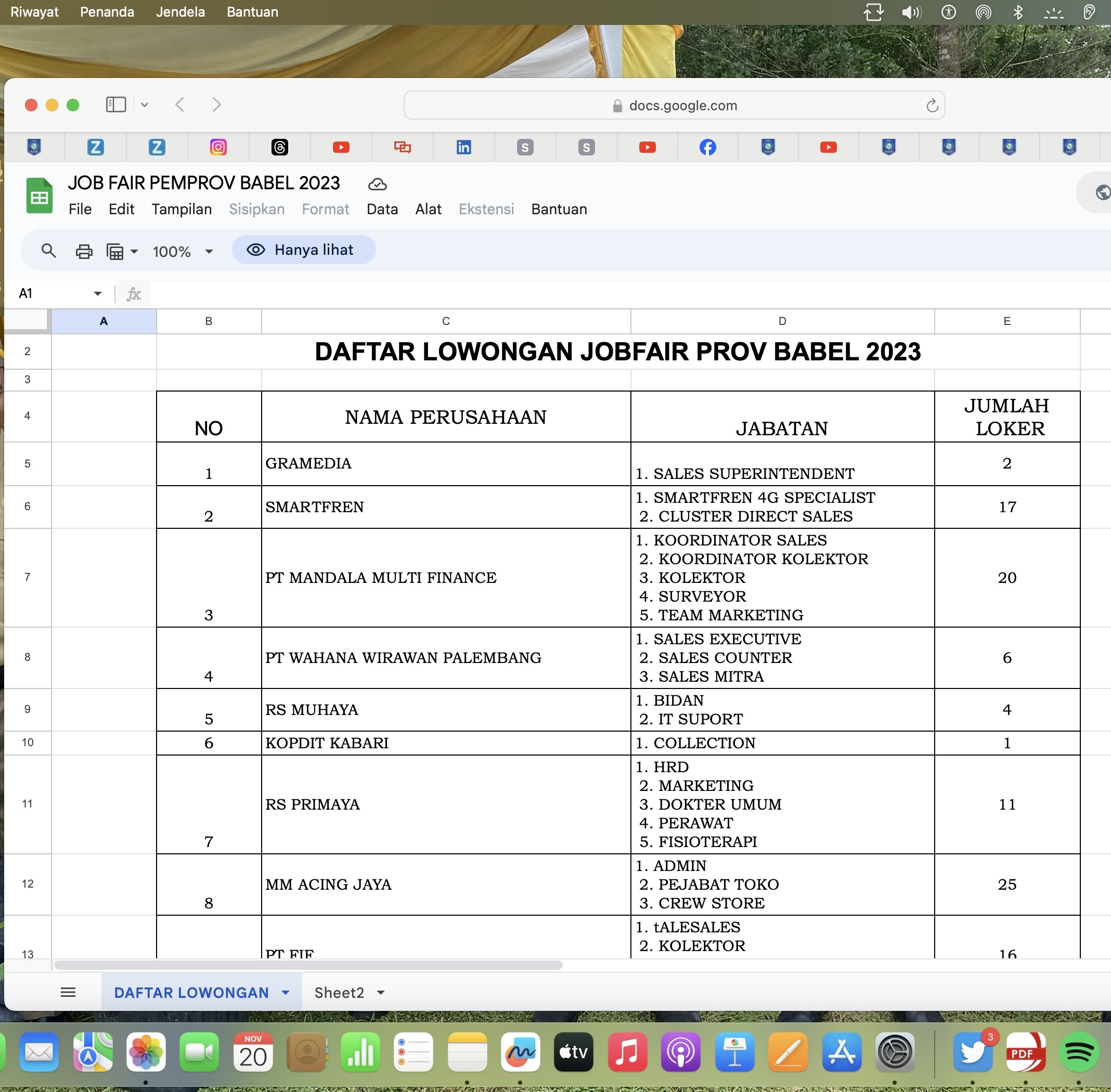 Link perusahaan yang berpartisipasi https://docs.google.com/spreadsheets/d/1nZwSnXF5WuMuJ9-rrZnxexBxnDp6r6eJDYtSPPw4RG8/edit#gid=0