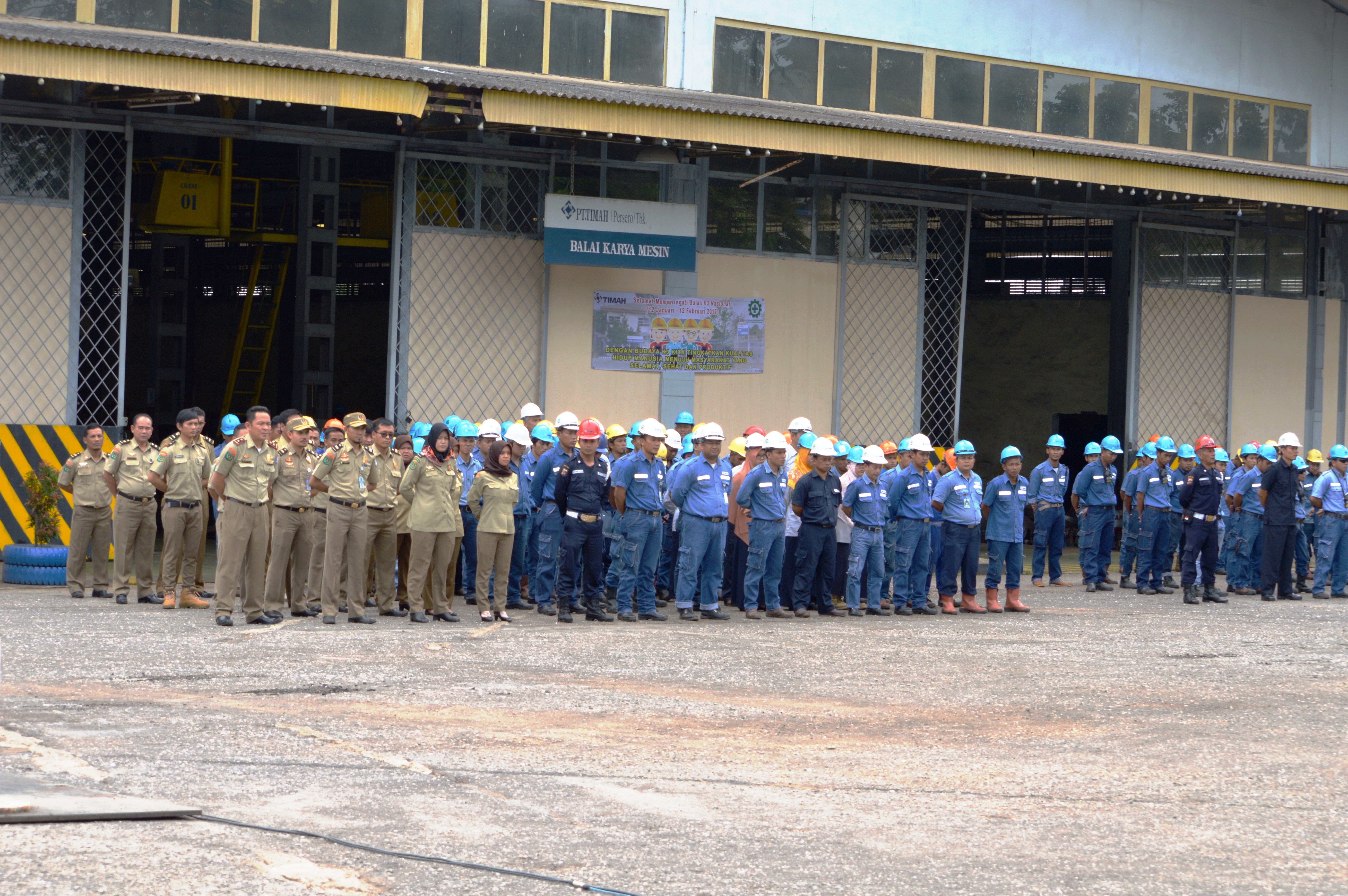 Air Kantung-Sungailiat, Dalam rangka memperingati K3 (Kesehatan dan Keselamatan Kerja) di bulan Februari, Dok dan Perkapalan PT.Timah yang berlokasi di Air Kantung-Sungailiat melakukan Upacara K3 dengan tema “Dengan Budaya K3, Kita Tingkatkan Kualitas Hidup Manusia Menuju Masyarakat yang Selamat, Sehat dan Produktif”,  (22/02/17).
